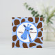 Adorable blue giraffe invitations are perfect for baby shower! Makes a great It's A Boy invitation. Design features a blue background with brown giraffe spots. In the centre is a white circle with blue trim and a blue and brown giraffe's head. Inside the circle is text in fun brown font that says Baby Shower, however the text can be customised to suit your needs. The reverse side is solid blue with brown font text. All of the text can be customised. Matching key chain, button, stickers, ornaments and mug also available!