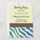 A cream background accented by a border of cream and blue zebra pattern with a band of brown. Customize with all of your birthday information as desired.