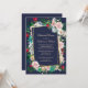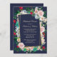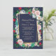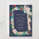 Stunning wedding rehearsal dinner invitation done in navy blue, with graphics of a double skewed gold framed text area decorated with pastel flowers, around the outside. Personalise the text to suit your wedding needs. Matching products are available.