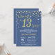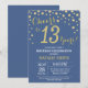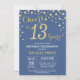 13th Birthday Invitation with Blue and Gold Glitter Diamond Background. Gold Confetti. Kids Birthday. Teen Teenage Boy or Girl Birthday. For further customisation, please click the "Customise it" button and use our design tool to modify this template.