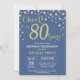 Blue and Gold 80th Birthday Diamond Invitation