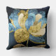 A bold and contemporary floral artwork throw pillow featuring a large stylised flower in shades of deep blue, gold, and soft off-white. The textured, foil-like detailing on the petals and leaves gives the piece a metallic shimmer effect, creating a modern and luxurious aesthetic. Set against a rich navy background, this abstract design highlights the beauty of colour, texture, and form, making it an eye-catching statement piece for any style.