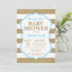 Blue and Gold Baby Shower Invitation. Gold Glitter. Boy Baby Shower Invitation. Gold and White Stripes. For further customisation, please click the "Customise it" button and use our design tool to modify this template.