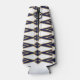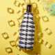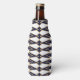 This bottle cooler has an art deco design of triangles and diamonds that look like bowties in blue and gold.