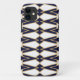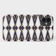 This phone case has an art deco design of triangles and diamonds that look like bowties in blue and gold.