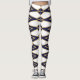 These leggings have an art deco design of triangles and diamonds that look like bowties in blue and gold.