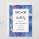 Trendy and modern Brunch and Bubbly bridal shower brunch and bubbly invitation featuring dark blue and gold alcohol ink pattern and matching back page.