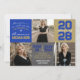 Blue and Bronze Gold Modern Chalkboard Graduation Photo Invitation on Grey Chalkboard