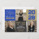 Blue and Bronze Gold Modern Chalkboard Graduation Photo Invitation on Black Chalkboard