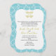 Blue and Gold Coral Rose Beach Wedding Invitation