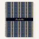 A damask pattern in shades of blue ornaments blue and gold stripes on this beautiful notebook. Resembles Victorian Gothic wallpaper in luxurious colors.