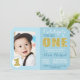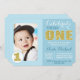 Celebrate the big ONE with this cute, blue and gold, girl or boy first birthday photo invitation. Cute heart in heart detail. Easy to customise design, add your little one's photo and your custom text.
