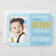 Blue and Gold First Birthday Party Invitation