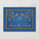 This monogrammed royal blue and gold floral damask save the date postcard matches the wedding invitation shown below. If you require any additional matching items, please email niteowlstudio@gmail.com with your request.