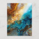 Blue and Gold Fluid Art Abstract Postcard