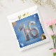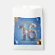 Celebrate a milestone sixteenth birthday in glamorous style with these elegant party favor bags. Featuring a dazzling 3D glitter number sixteen paired with festive blue and gold balloons, this chic design is perfect for a modern Sweet 16 celebration. The rich royal blue background and sparkly metallic accents create a luxurious vibe, making it a beautiful way to say "thank you" to your party guests. Easily edit the template with the birthday girl's name to match your blue and gold party decorations perfectly.