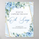 A romantic boho wedding tabletop sign featuring dusty blue flowers, eucalyptus greenery, and a touch of gold glitter in the frame creates a whimsical and elegant atmosphere. This combination of colours and elements can evoke a sense of nature and sophistication, adding a unique and enchanting charm to the wedding decor. The blend of soft blue hues, lush greenery, and subtle gold accents can create a visually stunning and cohesive look for the tabletop sign, enhancing the overall aesthetic of the wedding celebration