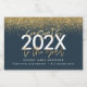 Blue and gold modern script glitter graduation sparkling wine label