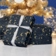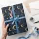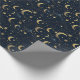 Blue and gold moon and stars wrapping paper