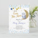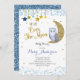 Blue and Gold Over the Moon Owl Baby Shower Invitation