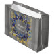Blue and Gold digitally painted botanical holiday wreath gift bag that can be personalised.