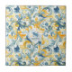 Immerse yourself in the timeless elegance of this paisley-inspired ceramic tile, featuring intricate blue and gold leaves gracefully arranged against a crisp white background. This design harmoniously blends vintage charm with rustic sophistication, evoking a sense of classic artistry.