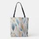 Cute pampas grass in shades of light blue and gold with golden glittering dots on a white background.
