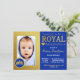 Blue and Gold Royal Prince Birthday Party Photo Invitation