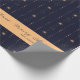 Wrapping paper featuring a dark blue and gold striped wallpaper background with an elegant script and serif font in which your personalised information is written. Check out our store for more items from this collection.