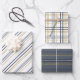Blue and Gold Stripes and Plaids Wrapping Paper Sheet
