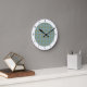 This clock features a repeating tiled pattern in soft blues and gold by artist Jayne Wilson.
