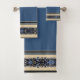 A vintage looking floral border in dark blue and gold on this bath towel set will add a touch of elegance to any decor. Vintage looking, with a Vctorian flair, classic, and oh-so-beautiful.