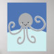 Blue and Gray Ocean Life Octopus Nursery Print