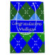 Personalised blue and green argyle gift bag. Eclectic Grandpa and Jazz Revival are looks both trending in 2024 and argyle fits perfectly into that stylish trend. Blue and green argyle design, blending a classic preppy diamond pattern with lively shades of blue and green. Personalised gift for your mum, dad, sister, brother, cousin, uncle, aunt, grandpa, nana, golf buddy, office mate.