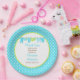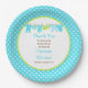 Blue and Green Baby Line Baby Shower Paper Plate