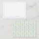 This tiny personalised note card features a lattice pattern of green vines and blue bows and ribbons on white. Personalise the front with your choice of name or special text in matching blue and white.
