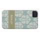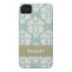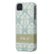 This custom elegant vintage blue, cream and mossy green damask iPhone 4 and 4s Case-Mate Barely There case and cover can be personalised with your name on the green stitched ribbon design. Accessorise your favourite gadget with a floral feminine and girly baroque meets French Country style case that looks sophisticated, luxurious and upscale. Designed by Chrissy H. Studios, LLC. All Rights Reserved.