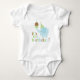Cute birthday design features an adorable illustration of a blue elephant holding a cupcake with a birthday candle and can be personalised with your child's name or any text of your choice.