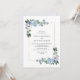 A blue wedding theme design with a dusty blue back and blue and white painted flowers with green foliage. A perfect design for your summer, spring and winter wedding. You can personalise the text and colour detail on this wedding invite template.