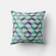 Green and blue geometric pattern pillow. Made in the U.S.A. from the highest quality cotton or polyester. Decorative throw pillows with a geometric pattern in contemporary colours. Available in 16 or 20 inch square and 13" by 21" rectangular sizes. Insert included. (Also available as a patio or garden pillow, just select outdoor from the Fabric tab and choose the size you need).