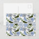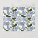 Blue and Green Hand Drawn Floral Block Print Postcard