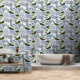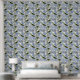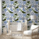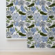 Blue and Green Hand Drawn Floral Block Print Wallpaper