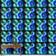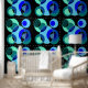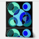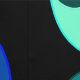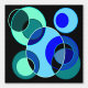 Colorful and geometric abstract pattern, various shades of green and blue intersecting circles on black background