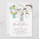 Invite guests to your event with this customisable bridal shower invitation. It features whimsical blue and green mason jars, heartstrings, and flowers. Personalise this mason jar bridal shower invitation by adding your details. This custom bridal shower invitation is perfect for spring and winter showers. It is available in other colours and cardstock.