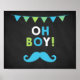 Blue and Green Moustache Chalkboard Baby Shower Poster