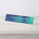 Personalised desk name plate featuring a blue and green northern lights background. Personalise the northern lights name plate by adding your name and job title in white lettering.