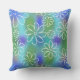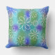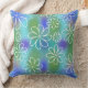 A floral pattern design, this throw pillow displays drawings of flowers on a blue and green background. This is the perfect item to add to your home décor. Get yours today!