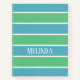 A pattern of large blue and green stripes. There is space for a name or other custom word.