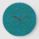 A Round Acrylic Wall Clock, with a Blue and Green abstract pattern of underwater textures and colours that coordinates with the Posh and Painterly "Fish in the Sea" collection; this pattern can be adjusted to fit any Clock.