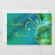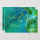 The text on this blue and green nature inspired wedding invitation is fully customisable. To change it, use the personalise option. For more extensive text changes, such as changes to the font, font colour, or text layout, use the customise option. The colours in this invitation are various shades of blue and green reminiscent of water. Although currently customised for a wedding, it could be used for a variety of special occasions. All you need to do is change the text.